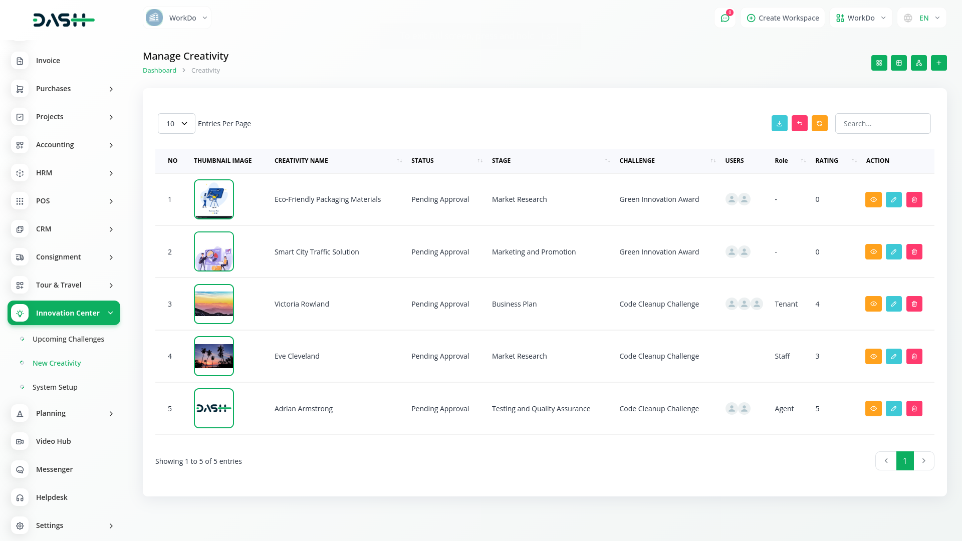 In the Innovation Center module, you can create a challenge related to your project, business, or company. You can also set a deadline and provide an explanation and description for that challenge.