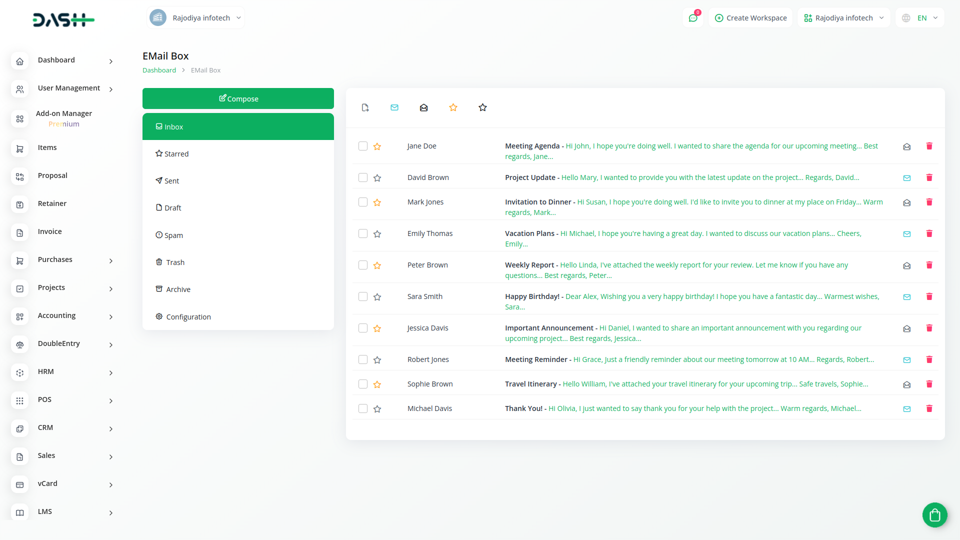 In the EMail Box module, you gain seamless access to your email folders, including Inbox, Drafts, Spam, Sent, Trash, and Archive, all hosted on your SMTP server. This powerful tool empowers users to not only retrieve emails but also interact with them in real-time.
